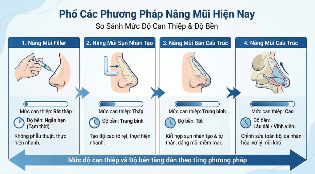 Bài viết này sẽ giúp bạn hiểu rõ các phương pháp nâng mũi phổ biến hiện nay, ưu – nhược điểm của từng loại và cách lựa chọn đúng.