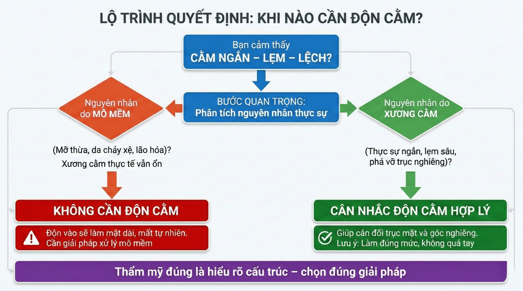👉 Không phải cằm ngắn nào cũng cần kéo dài bằng độn.