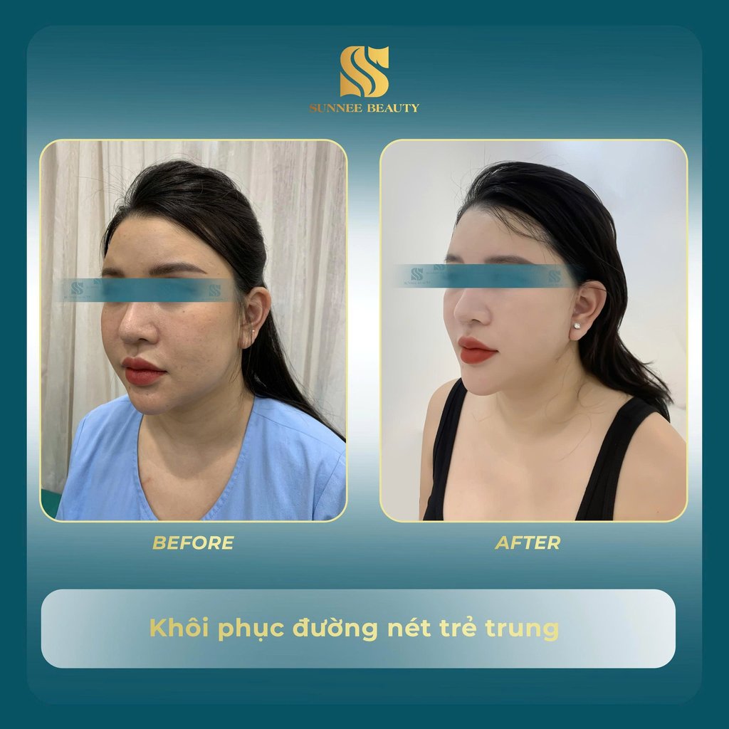 Phục Hồi Đường Nét Trẻ Trung: Phương pháp này tập trung nâng cơ và tái định hình các đường nét khuôn mặt (như đường viền hàm, cằm) bị chùng xuống do lão hóa, giúp khuôn mặt trở nên V-line và sắc nét hơn (như hình ảnh Before & After).
