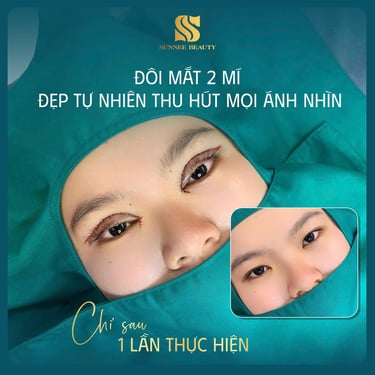 Đôi mắt 2 mí to tròn, cân đối luôn là chuẩn mực của vẻ đẹp và sự quyến rũ. Nếu bạn đang tìm kiếm một giải pháp để sở hữu ĐÔI MẮT 2 MÍ ĐẸP TỰ NHIÊN, có chiều sâu, và THU HÚT MỌI ÁNH NHÌN, SUNNEE BEAUTY là lựa chọn tin cậy dành cho bạn. Với kỹ thuật thẩm mỹ tinh tế, chúng tôi cam kết mang lại đôi mắt hoàn hảo, trẻ trung, CHỈ SAU 1 LẦN THỰC HIỆN duy nhất.