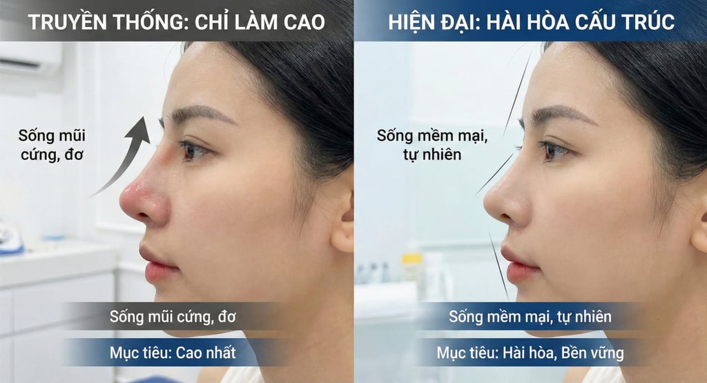 Nhưng trên thực tế, nâng mũi hiện đại không còn là câu chuyện chiều cao sống mũi, mà là quá trình chỉnh sửa tổng thể cấu trúc mũi để đạt được sự hài hòa, an toàn và bền vững lâu dài.