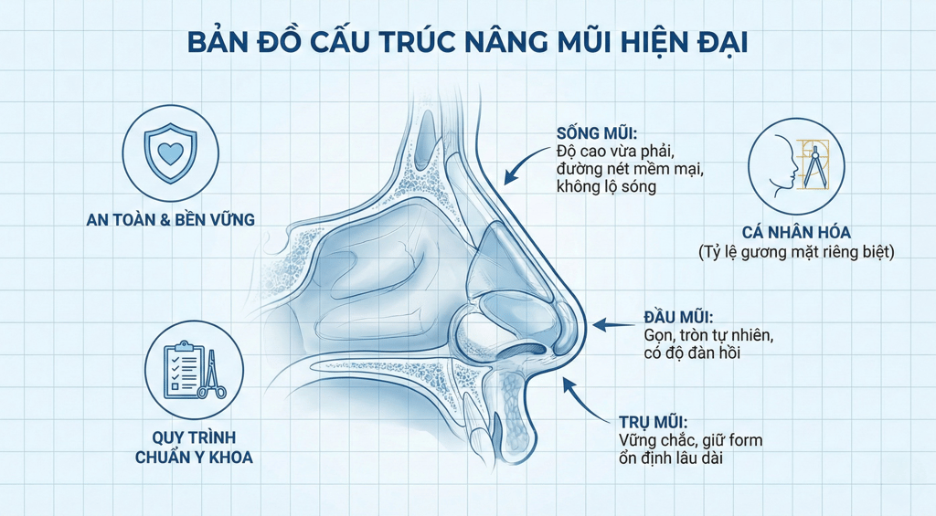 Nâng mũi hiện đại không chỉ là “làm cao mũi”, mà là cả một quá trình chỉnh sửa cấu trúc mũi dựa trên khoa học thẩm mỹ và sự an toàn lâu dài.