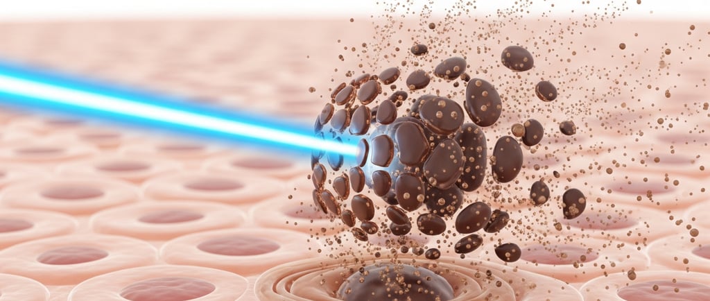Quá trình này gần như không sinh nhiệt, do đó cực kỳ an toàn cho da. Các mảnh sắc tố siêu nhỏ này sau đó sẽ được hệ thống miễn dịch của cơ thể "dọn dẹp" và đào thải ra ngoài một cách dễ dàng và nhanh chóng hơn rất nhiều.