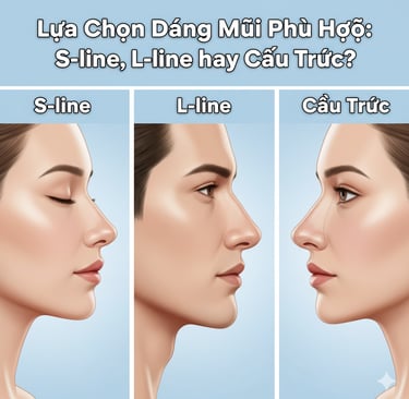 Nâng mũi S-line/L-line: Dựa trên phương pháp cấu trúc, tạo hình dáng mũi cong mềm mại (S-line) hoặc thẳng, sắc nét (L-line).