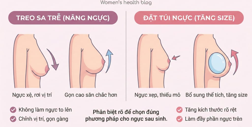 Không phải mọi trường hợp ngực sa trễ sau sinh đều cần đặt túi.
