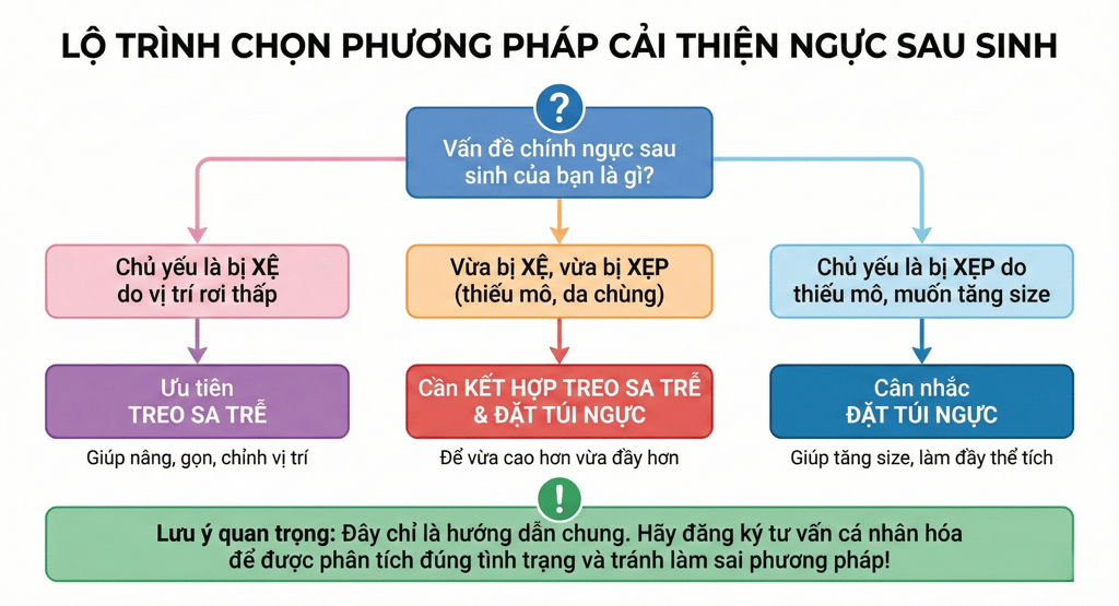 👉 Ngực sa trễ sau sinh không phải lúc nào cũng cần đặt túi.