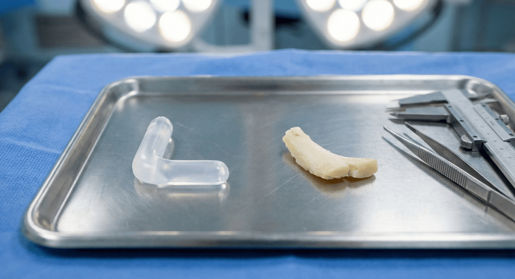 👉 Sụn tự thân có độ tương thích cao, thường được dùng để bảo vệ đầu mũi và trụ mũi.