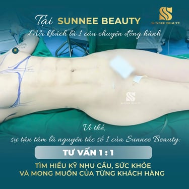 Phẫu thuật thẩm mỹ là một cuộc hành trình. Tại SUNNEE BEAUTY, chúng tôi tin rằng "Mỗi khách là 1 câu chuyện đồng hành". Vì thế, sự Tận Tâm không chỉ là lời hứa, mà là NGUYÊN TẮC SỐ 1 của chúng tôi. Sự hoàn hảo của kết quả thẩm mỹ phụ thuộc vào cả quá trình, từ khâu tư vấn, thực hiện cho đến chăm sóc hậu phẫu dài hạn. Đâu là những yếu tố tạo nên sự khác biệt, giúp khách hàng hoàn toàn an tâm khi lựa chọn dịch vụ điêu khắc cơ thể (hút mỡ, tạo hình bụng, tạo múi) tại Sunnee Beauty?