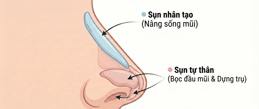 Sụn tự thân không phải lúc nào cũng là lựa chọn duy nhất, nhưng là vật liệu đóng vai trò quan trọng trong nâng mũi hiện đại, đặc biệt ở đầu mũi và trụ mũi.